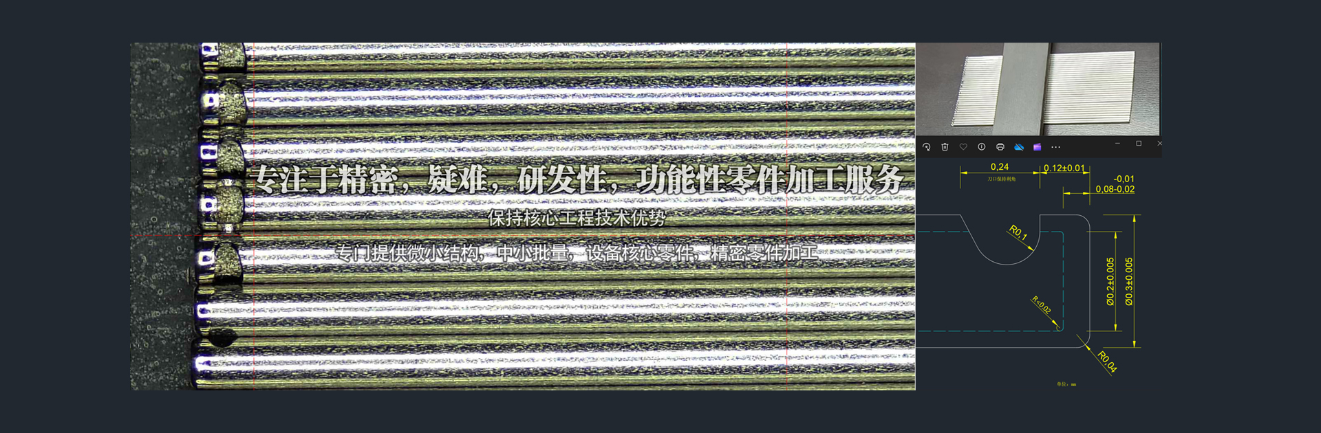 我們能應(yīng)對的精密零件 ,最高加工(gōng)精度(dù)可達(dá)±0.002mm(部分±0.001)